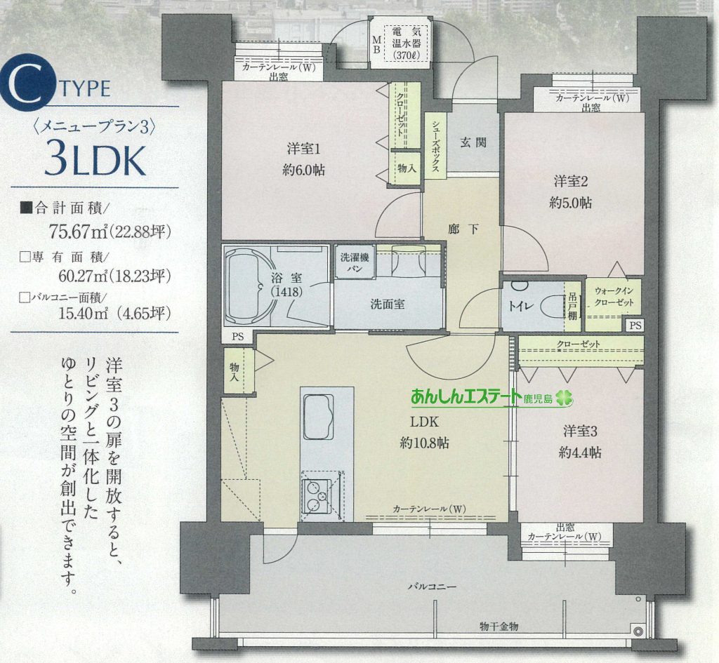 ・3LDK(LDK10.8、洋6、洋5、洋4.4)